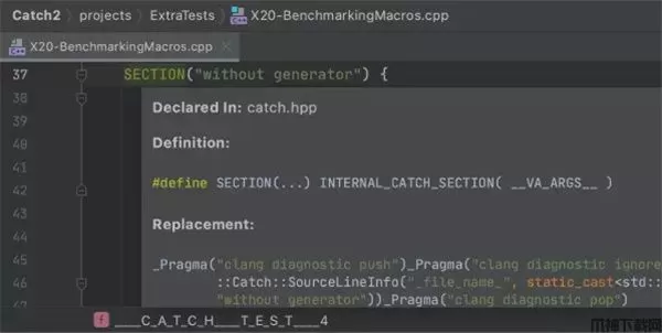 检查脱字符号下的代码即可了解任何信息:函数签名详细信息、审查评论、预览 Doxygen 样式文档、检查针对缺少显式类型的符号推断出的类型,以及查看正确格式化的最终宏替换。