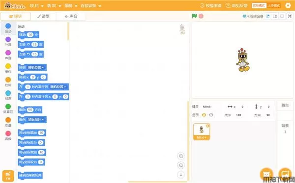 Mind+不仅支持Scratch自带的鼠标、键盘对角色的控制功能,还扩展出支持传感器、舵机等模块与一到多个角色之间的交互控制功能,让用户可以轻松实现互动编程和互动装置项目。