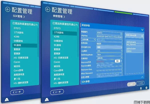 4.使用AnySDK打包工具,将母包秒级生成多个渠道包