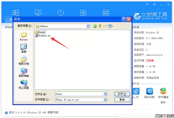 2.1、先拷贝SC3.0封装后的配置文件到桌面或其它目录,封装后的配置文件路径在windows\ScData\Scdata.sc。