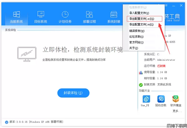 2.3、SC修改操作完成以后移到右上角设置图标点击“导出配置文件[.sc]”,选择需要导出的路径。