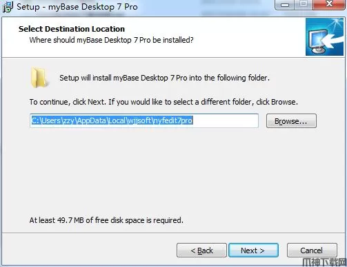 3.选择安装位置,默认路径为“C:\Users\zzy\AppData\Local\wjjsoft\nyfedit7pro”点击“browse”可更改目录,但是建议不要去更改保持默认即可,这样才方便等下的破解操作