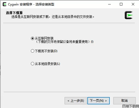 2.在这里是选择软件的安装模式,分别为从internet安装、只下载安装程序不安装、安装已下载的数据包,如果没有安装包的话,这里我们选择第一种比较好。