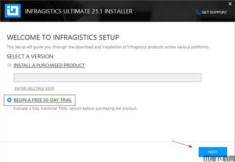 2、运行Infragistics_DevTools_20211.exe开始安装软件,这里选择试用30天,之后激活