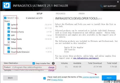 1、从本站下载解压缩,得到Infragistics Ultimate源文件和补丁