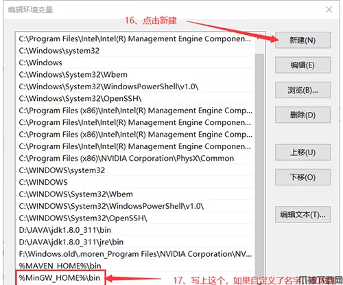 4、点击环境变量,找到系统变量的path变量,在最后加上“;C:\MinGW\bin”。