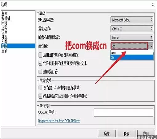 4、接着打开高级功能,将“首选域”换成“cn”并单击应用保存修改。