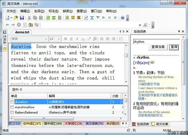 ⑤如果只分析选择部分的文本,请选择文本后,按菜单"生词->分析选择"