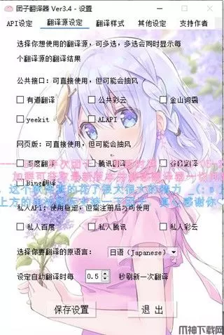 6、还有翻译的原语言(目前只支持英语、日语和韩语),自动翻译时间的设定