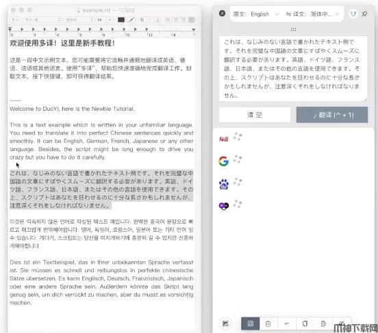 2、快捷翻译:选中待翻译文本,只需按下快捷键,多译帮您快捷翻译,无论您正在使用浏览器 Word 还是Pages,均可一键翻译需要的文字。