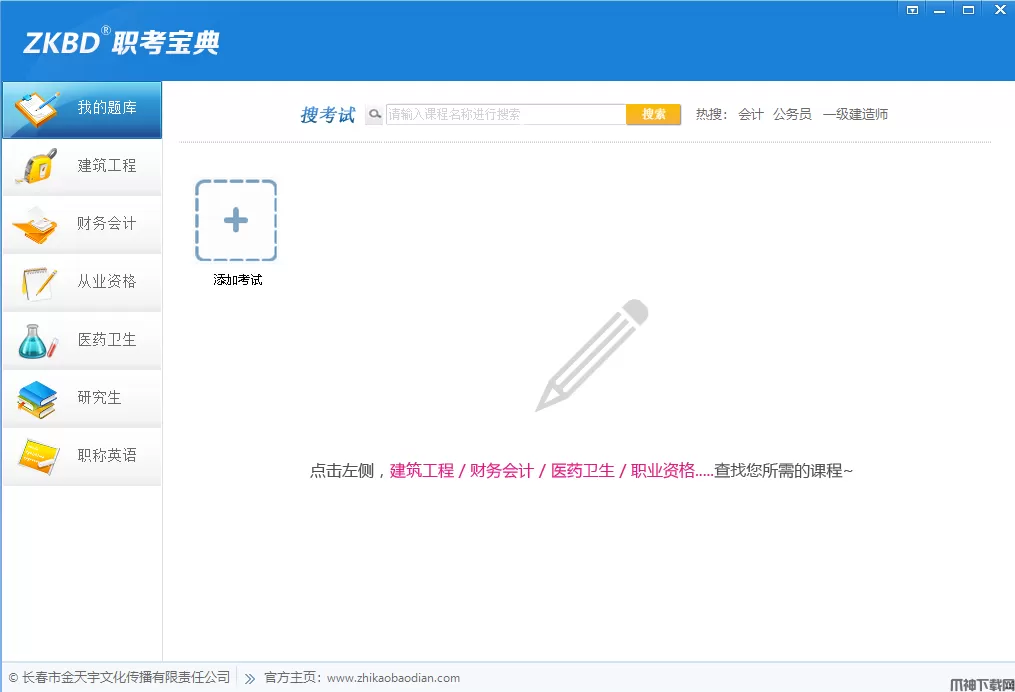 ZKBD职考宝典(职称考试复习软件)是由长春市金天宇文化传播有限责任公司精心打造的一款功能强大,涵盖丰富的多学科职称计算机在线学习考试系统,该软件适用于全国各个企事业单位参加职称计算机考试人员。其内容包括:医学高级、医学中级、职称计算机、职称英语、建筑工程、财会经济、职称资格、从业资格等八大方向,专注于为用户提供最新2018年职称资格考试类题库,近500个科目可选,让您随时随地想学就学。通过手把手教学一步一提示,同步答案演示帮助您高效掌握解题方法。模拟考试10套全真试题,共400道左右的真题,自动评分,考后即知成绩,错题复习帮助您查缺补漏。名师课堂,专业教师耐心细致讲解各个知识点,零基础也可以轻松学会。错题收集,错题复习自动收录做错题目,您可以将错题调出重做,加深印象。考试指南,软件帮助备考指南、答题技巧、考试大纲、常见问题让您对职称计算机考试更加了解,自信备考。