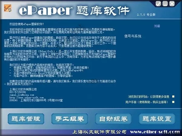 详尽的使用说明。附带PDF和chm两种格式的用户手册,方便打印和阅读,为用户更好地使用ePaper题库软件提供了详尽的帮助和说明。