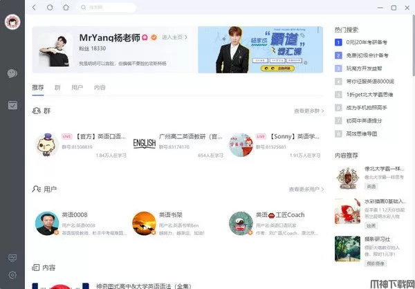 沪江网校pc客户端是一个专门为用户们提供外语学习的课程学习辅助软件。针对于用户们的学习,沪江网校电脑版提供了英语、日语、法语、韩语、泰语、德语、西班牙语和汉语等等学习课程内容,内容横跨升学应试、海外留学、工作商务等各个领域。沪江网校电脑版内有着非常专业的学习服务,它的服务体系是以班级为基础,让用户们能够在交流中学习到更多东西,而不是独自一个人进行学习,用户在这里可以按照自己的喜爱,需求和学习进度为自己制定专属的学习内容,同时也会有老师不定时开播教学,更多的课后习题试卷帮助你巩固学习内容。还有更多学习交流群等着你的加入,让你体验不一样的外语学习环境,需要的用户快来下载吧!