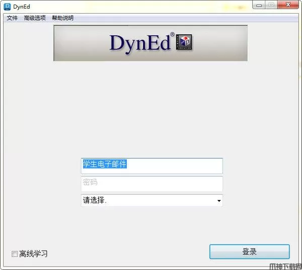 1、打开DynEd电脑版软件,进入到软件登录界面,你需要输入学生账号和密码,输入完成后才可以进入软件,如果你不知道账号和密码可以向老师询问,登录成功后进入下一步。