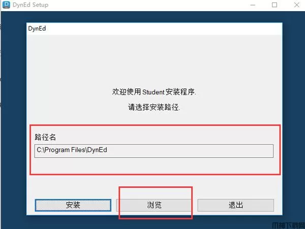 三、选择软件的安装路径,可选择默认路径C:\Program Files (x86)\DynEd,也可点击“浏览”自定义安装路径。完成设置,点击“安装”