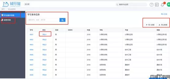 2、学生信息库:老师有时候需要看到某一学生的全部信息,但是调取数据变得特别麻烦。在辅导猫的学生信息库里,就可以看到该学生所有信息,一目了然。