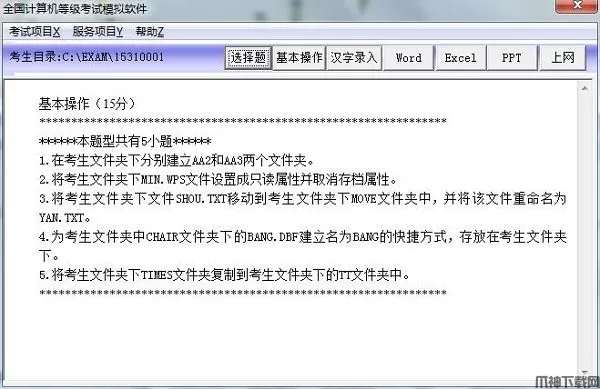 第二大题是基本操作题,基本操作题要考查文件或文件夹或对快捷方式之间的创建、剪切、复制、粘贴和删除,这也是初学者必须掌握的。