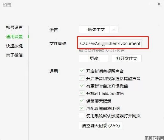 1、登录pc版微信,从设置 – 通用设置中 找到对应路径,默认是C:\我的文档\WeChat Files\;(注:此指引适用于2.6.3版本以上的PC微信)