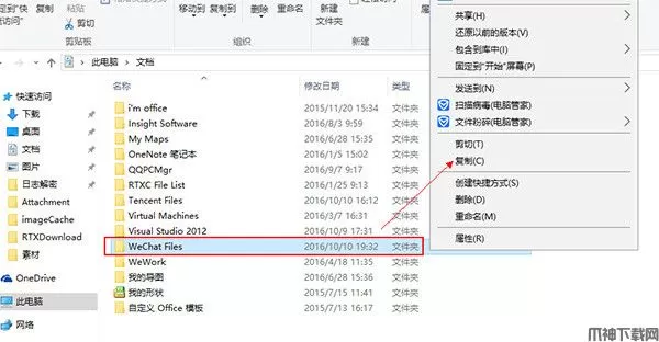 3、将 wechat files 复制后通过云端或U盘,QQ等发送至需要迁移的新电脑 B;