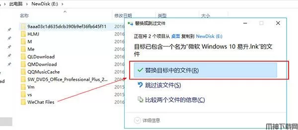 4、用迁移过来的WeChat files 覆盖至新电脑B的WeChat Files. 选择替换目标中的文件;