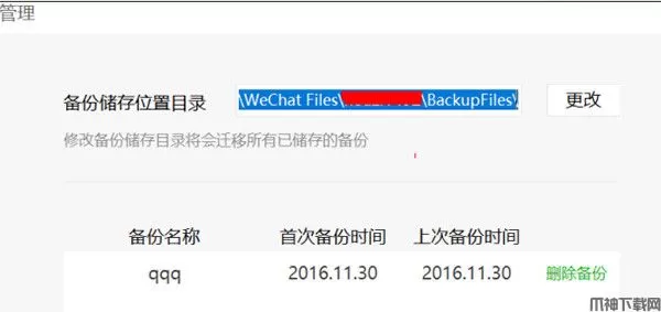 5、若原电脑上有聊天备份记录且更换过默认路径,进入设置->聊天备份>管理备份找到相应路径,将BackupFiles整体复制迁移到新电脑默认路径下(我的文档/Wechat Files/微信号/);