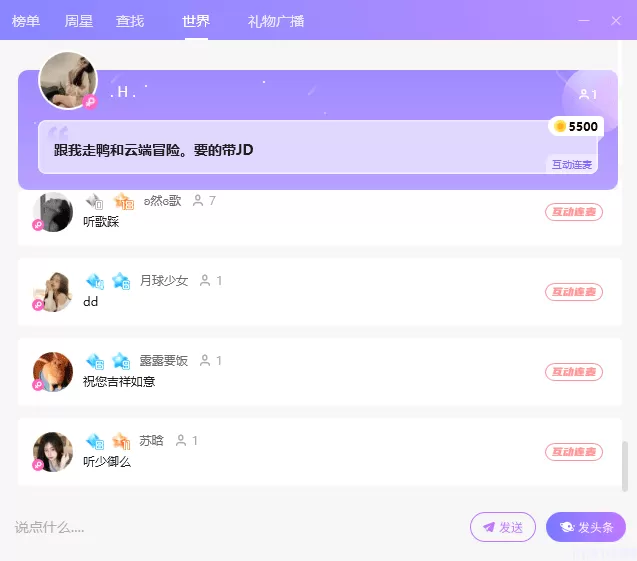 4、还可以在世界频道里寻找志同道合的朋友