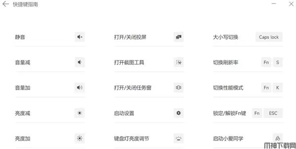 5、快捷键指南,此功能用于查看和学习笔记本上的快捷键;