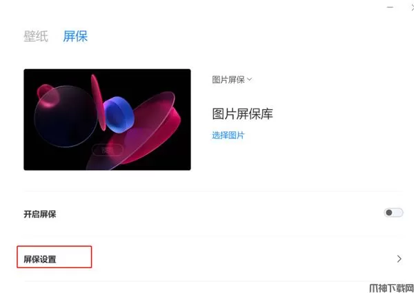 7、选择屏保,点击屏保设置;
