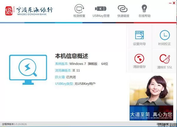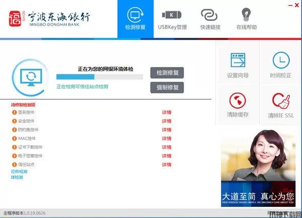 宁波东海银行网银助手是由宁波东海银行官方出品的宁波东海银行网上银行客户端的电脑端安全控件,它是一款专为网银客户制作的检测工具,软件体积小巧,在PC端安装可以帮助用户检测系统环境,如果有问题,可以一键在线修复,并提供了控件、证书等网银必备工具的下载和安装,是宁波东海银行用户的必备工具。操作简单,安装后双击打开,点击【检测修复】,完成后,点击【一键修复】即可。本站为用户提供宁波东海银行网上银行客户端新版客户端下载,正版验证,亲测有效,有需求的用户还请下载安装。