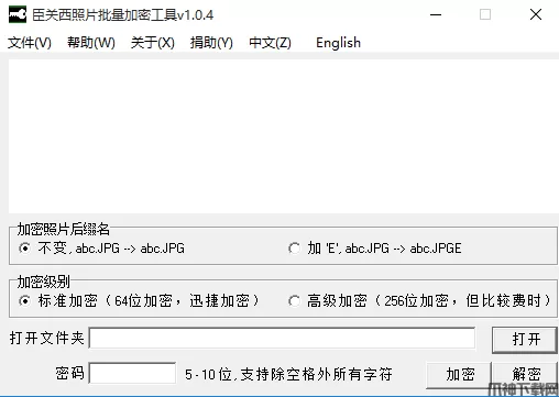 照片是每一个人非常重要的隐私,于是图谋不轨的人想通过不法手段获取你的照片,那么这时我们就需要这款臣关西照片批量加密工具,它采用独特加密算法,实现对照片和图片进行批量加密,保护您的隐私。支持设置5-10位密码,支持几乎所有格式的图片,批量处理,几十上百张照片,一键完成。而且是免费使用,简单的操作方式,非常方便,有需要的小伙伴可以来下载使用!