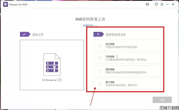 根据内置或自行创建的词典恢复密码。强烈建议。