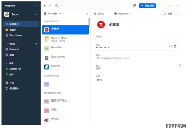 1Password一款真正安全可靠的免费中文密码管理工具,其主要是由密码管理器与浏览器扩展两大部分组成,功能强大,不仅能够支持Windows、Mac、iOS、Android等主流操作系统跨平台使用,轻松将密码数据保存到电脑硬盘中,让你不用担心云储存的风险,还拥有非常高效好用的“一键登录”功能,可以帮你自动登录各种网站,用户只需记住一个主密码,即可实现随时随地一键登录,非常专业!
