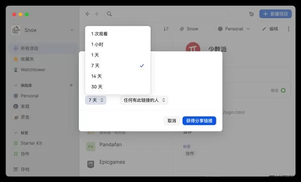 分享功能上的优化非常明显,不仅依旧支持从单次查看到最长 30 天的可通过邮箱二次验证的密码链接外,启动速度也有大幅提升,你再也不用等着两波圈圈转完才能分享出去。