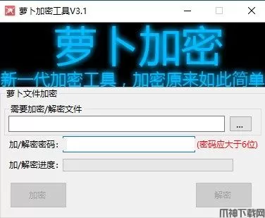 萝卜加密工具官方版是一款绿色免费的文件加密工具,它可以加密任何类型的文件,加密后,会隐藏原文件,加密后的文件不能直接打开,需使用本工具解密后,才能正常打开,是保护私密文件的好帮手。此外还可以显示加密进度,使用方法简单,赶快下载为你的隐私文件进行加密吧!