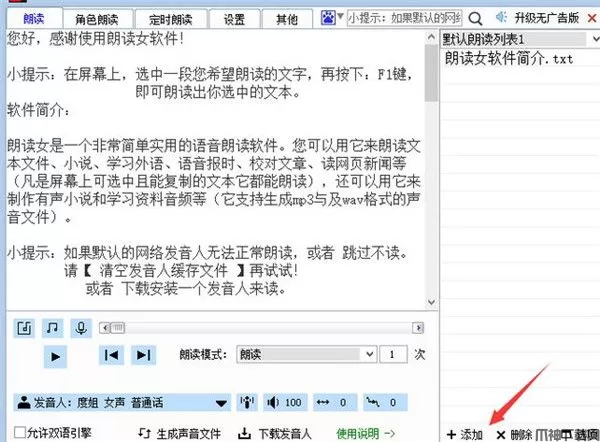 你可以选择朗读角色,首先你可以确定一下总体朗读人数为几人,其次,你需要将需要朗读文章那些段落或篇幅有那个人朗读,确定好了以后你可以设置相应的发音参数;最后,你可以选择相应的文本位置,按照对应发音人输入角色名称。小编提醒:建议兰度反映人的角色设置不宜过多,建议控制在4人以内。