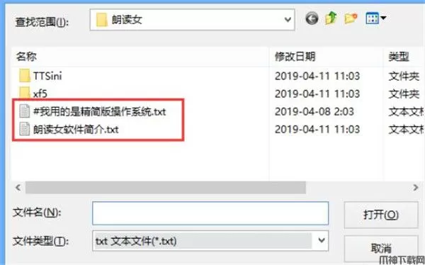 2、在打开的选择框中,找到要阅读的txt文档,并选中打开;