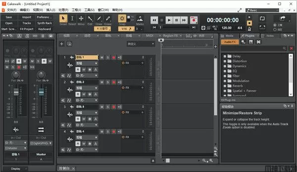 11、Studio的质量效果:对于跟踪,混合或母带制作,FX的范围从基本到独特,BandLab的Cakewalk都能满足您的要求。旨在模拟模拟调音台的布局,使用可扩展的ProChannel模块库构建和升级通道条,从卷积混响,共振滤波,动态压缩,强大的EQ到磁带和调音台仿真,峰值限制和管饱和,范围广泛