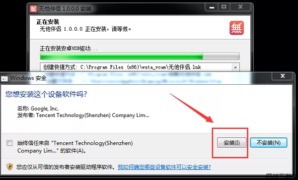 7) 以上步骤若检查无误,依旧无法检测设备,请回忆在安装【无他伴侣】过程中是否安装了此驱动,如未安装,请重新下载【无他伴侣】安装包, 重新安装且务必安装此驱动;完成后刷新设备列表检测手机设备。