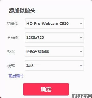 1、在9秀伴侣上面添加摄像头并选择合适分辨率,建议分辨率选择1280*720和800*600模式选着默认,并点击确定。