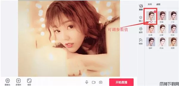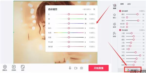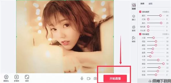 4、在调节完之后,就可以直播了,点击下方开始直播按钮就可以正常直播。