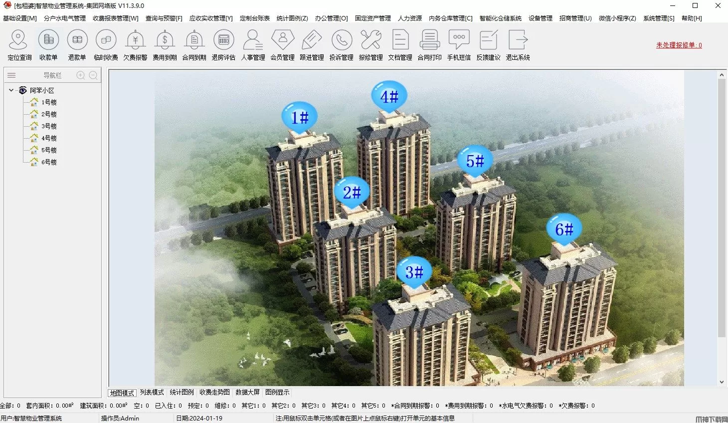 智能化:软件智能的对合同到期、物业收费到期、欠费的单元进行报警提示;