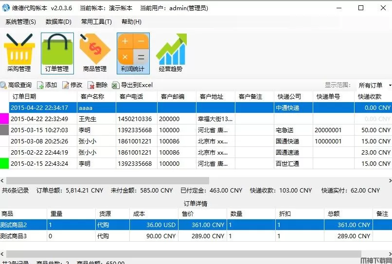 维德代购帐本是一款记账小软件,操作非常简单,首先预设商品种类和价格,后期都是一键编辑的,软件主要分采购管理、订单管理、商品管理、利润统计和经营趋势管理,在做代购的同时,还能通过软件学习统计知识、经商之道,实乃一举两得。维德代购账本除了基本的订单管理外们还可进行采购管理和商品管理,而且还内置了计算机,可以快速帮您统计利润,如果需要做销售总结,软件还可以一键生成柱状图和曲线图的趋势图。是不是心动了啊,代购们、微商们,那就跟我一起下载吧。