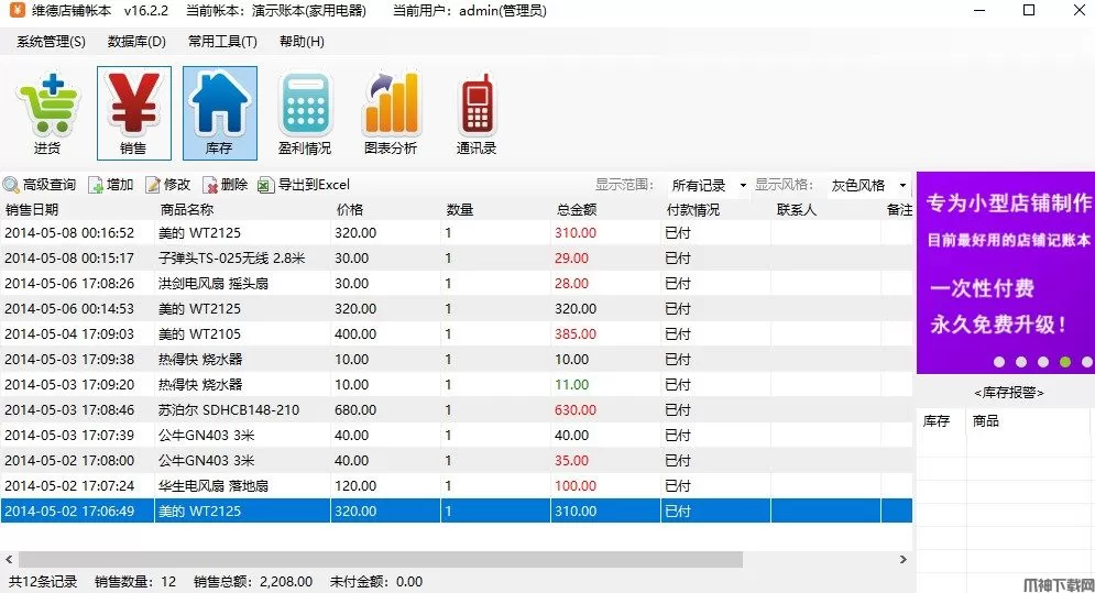 2、库存查询:可按查询当前库存,设置库存报警提醒,商品库存一目了然。