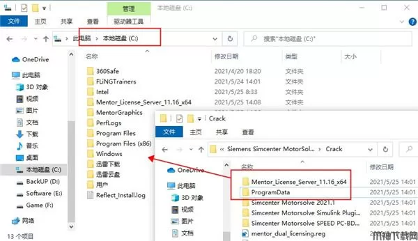 7、将programdata和Mentor_License_Server_11.16_x64文件夹复制到C盘目录中,路径尽可能短,并且不包含英文字母