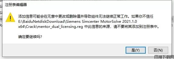 10、运行“ mentor_dual_licensing.reg”并确认将信息添加到Windows注册表中