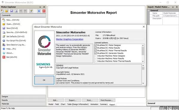 默认路径C:\Program Files\Infolytica\Simcenter Motorsolve