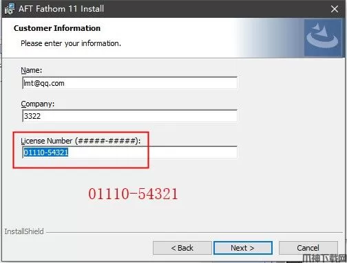 3、填入用户名、公司信息,序列号01110-54321