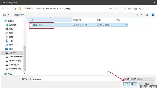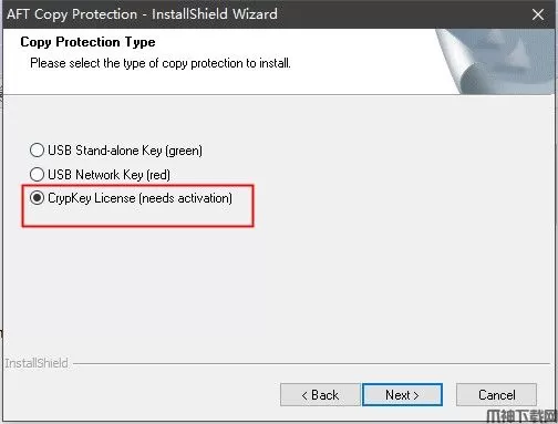 注意:这里是AFTCopyProtectionSetup.exe的根目录,不是AFT Fathom 11的根目录!默认位置为:C:\AFT Products\CrypKey