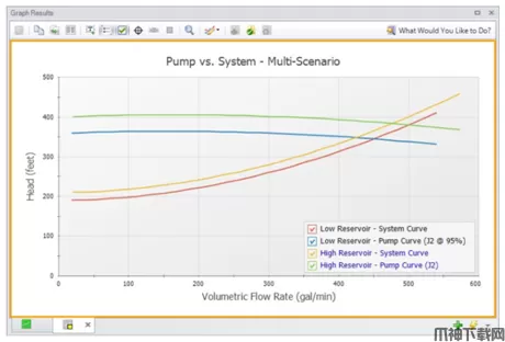 可以将不同场景下的泵曲线和系统曲线同时输出到同一图形中,便于对结果的比较和分