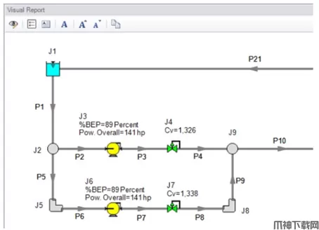 比如可以将泵的最佳效率点或调阀的CV值显示在可视化报告中